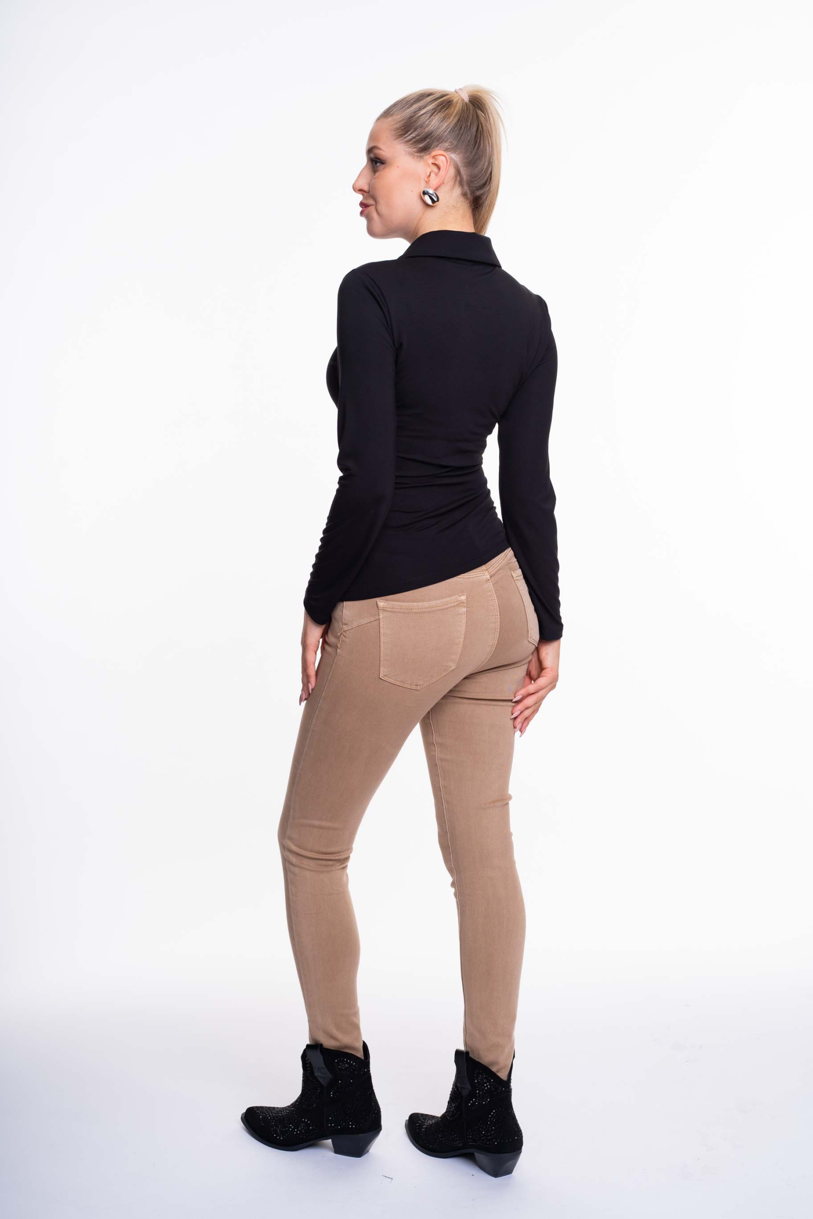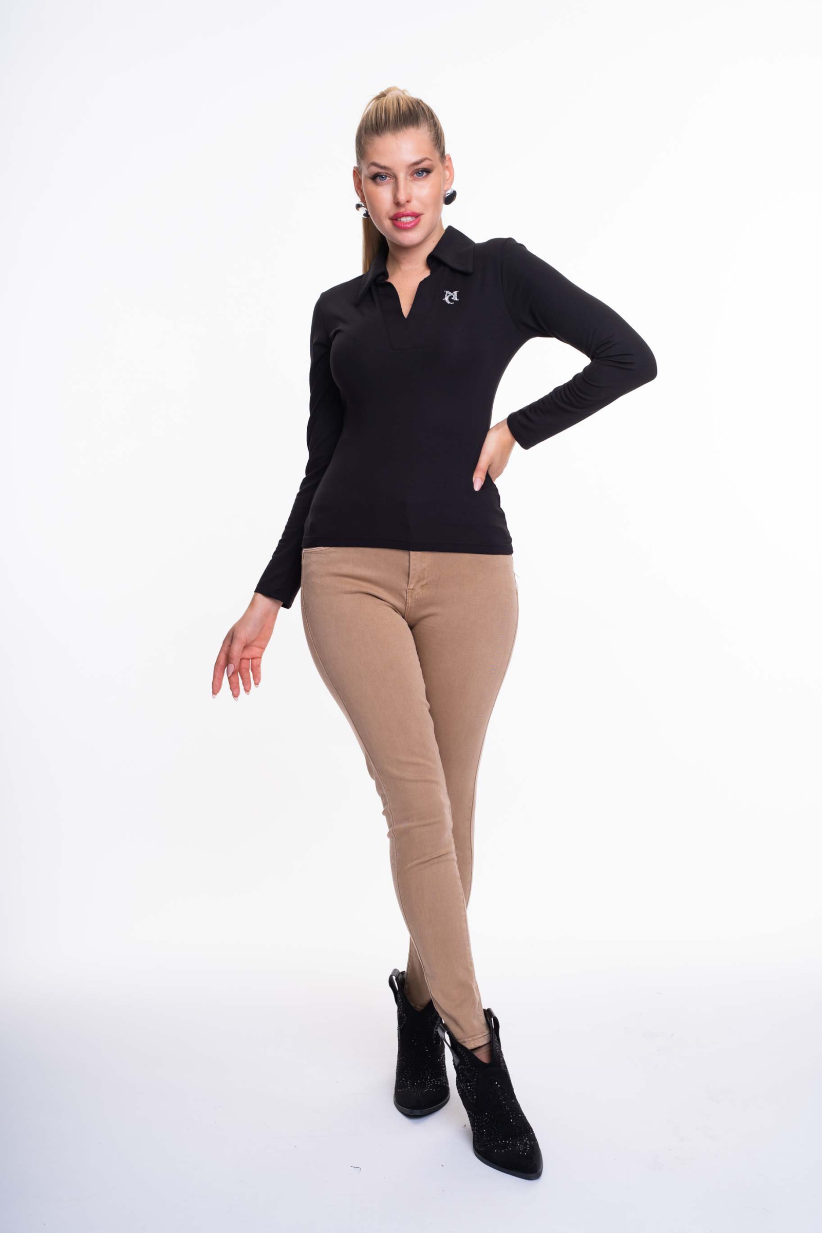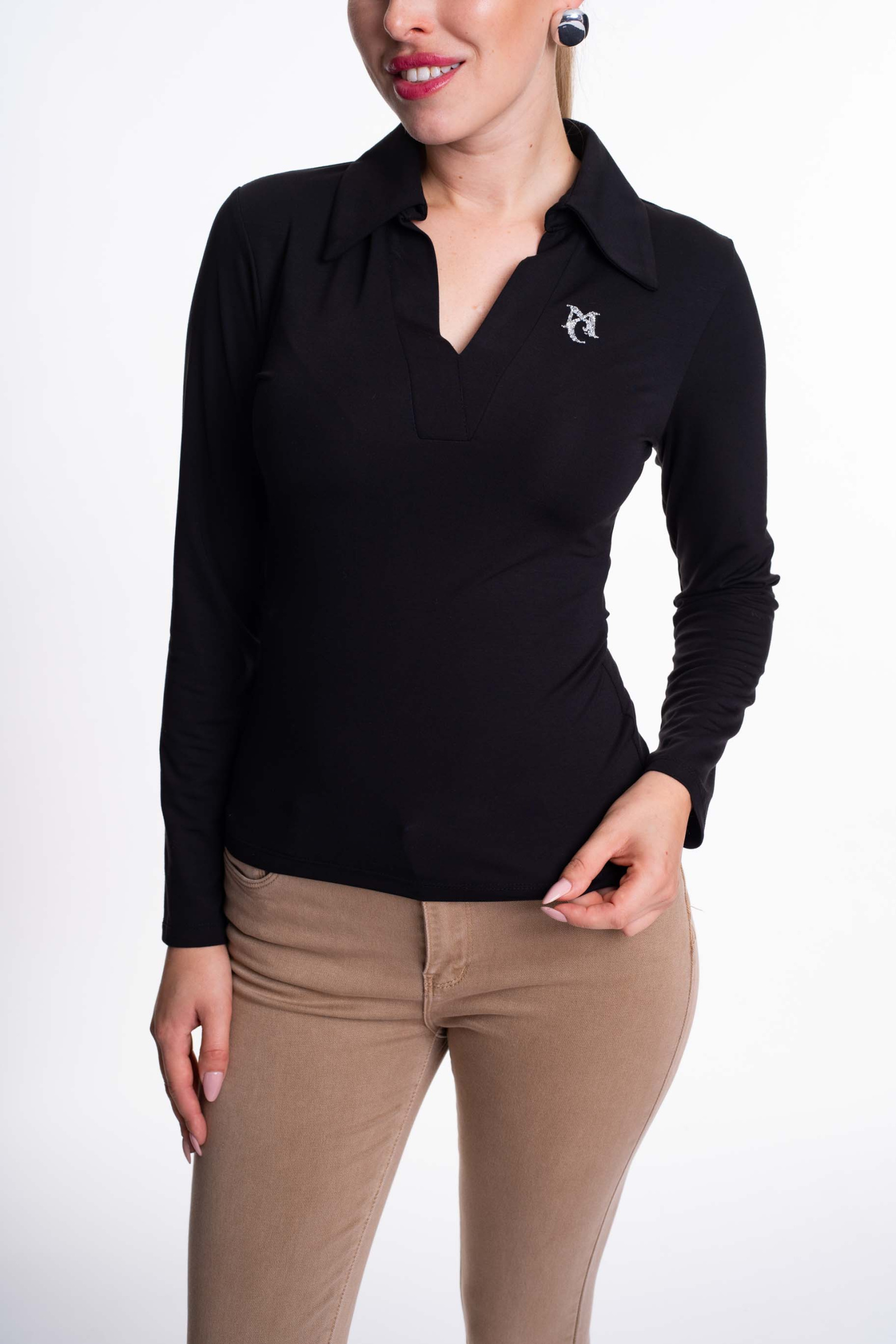 Elasztikus anyagból készült, karcsúsított felső, strasszos matrica nyomott márkajelzéssel.