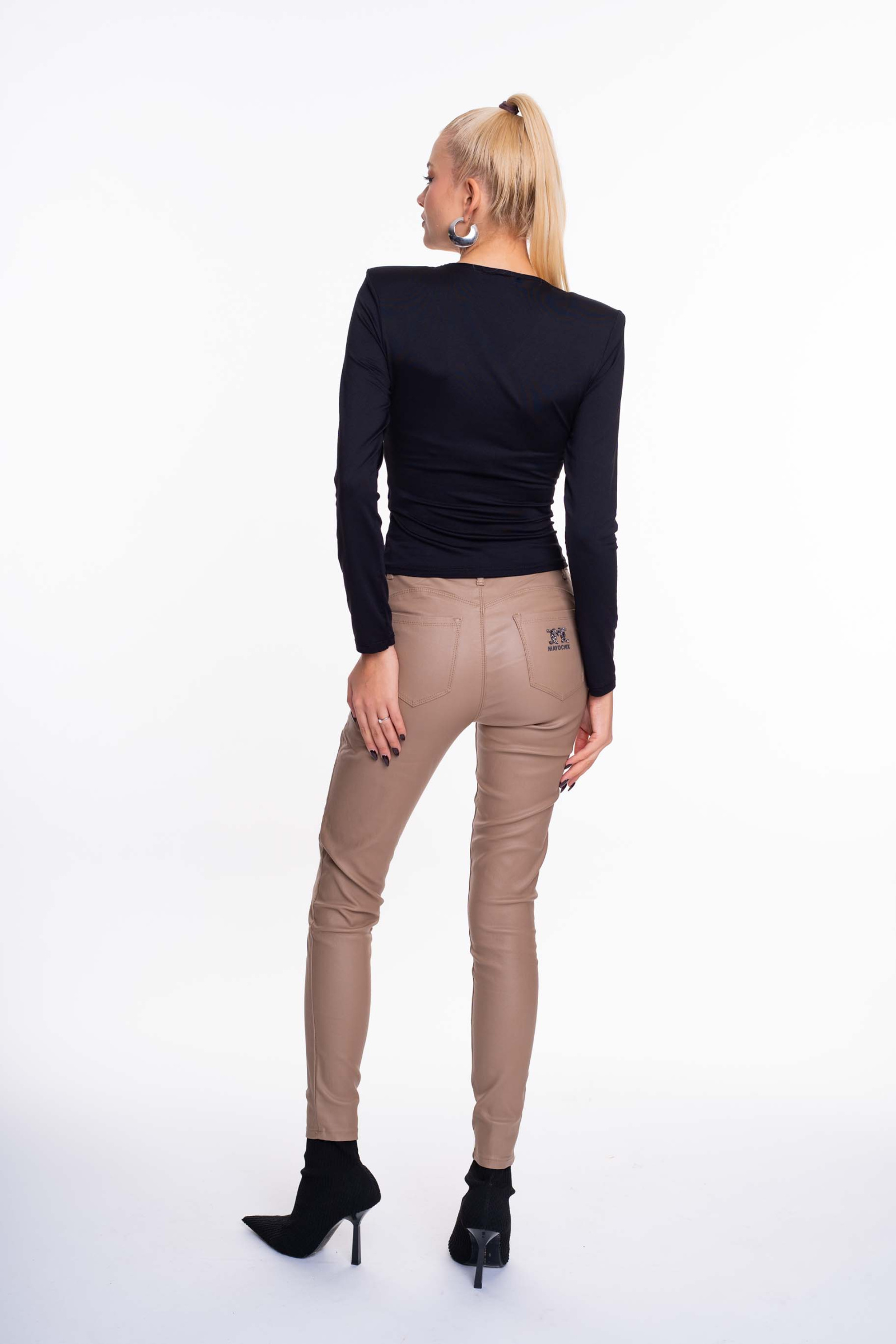 Elasztikus anyagból készült felső válltöméssel, szivacsos mell résszel, fém díszítéssel és márkajelzéssel.