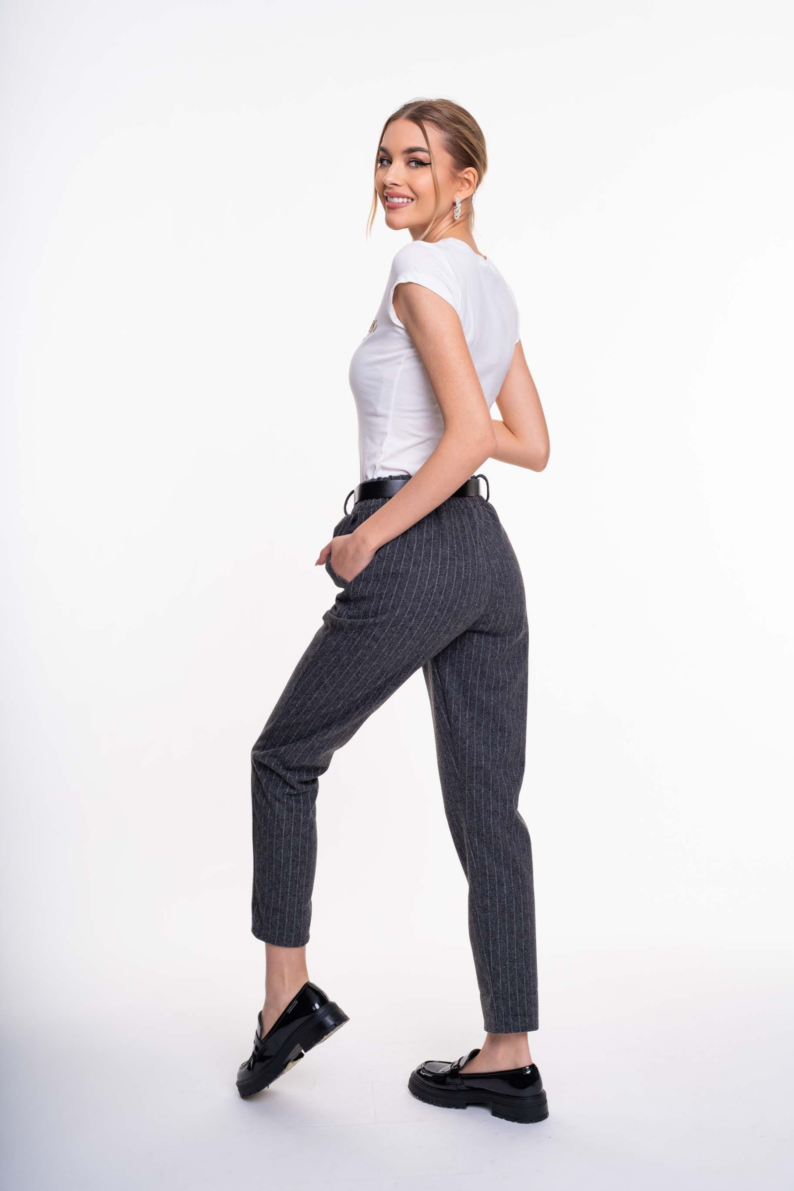 Elasztikus pamut anyagból készült, sportos fazonú felső, fényes, domború matricanyomással díszítve.