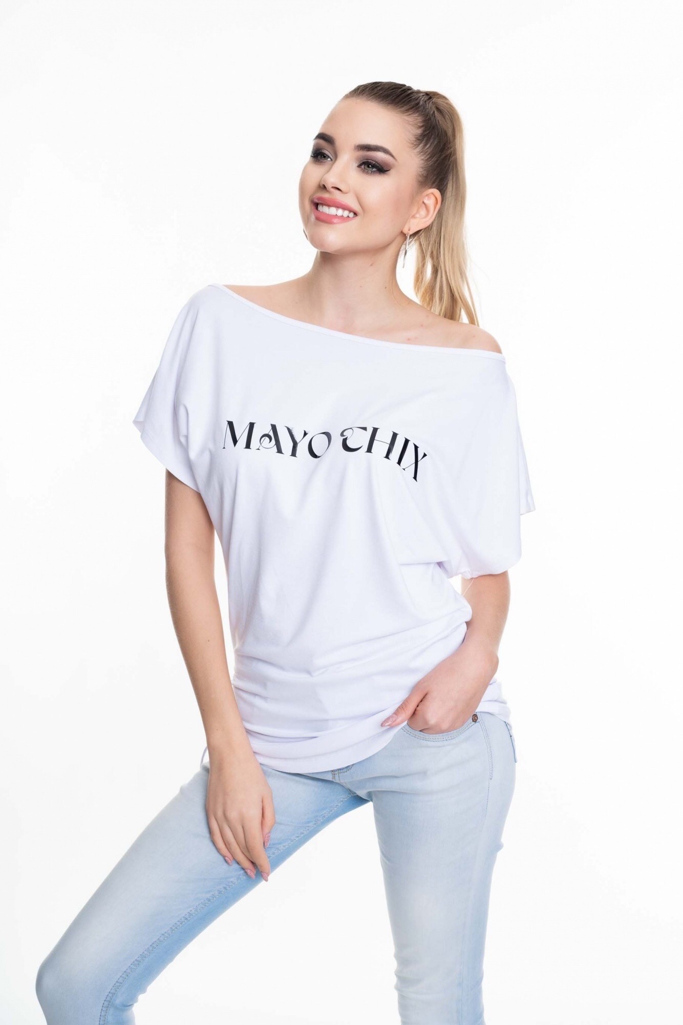 Elasztikus anyagból készült, lezser szabású tunika, alján behúzóval, film nyomott díszítésssel.