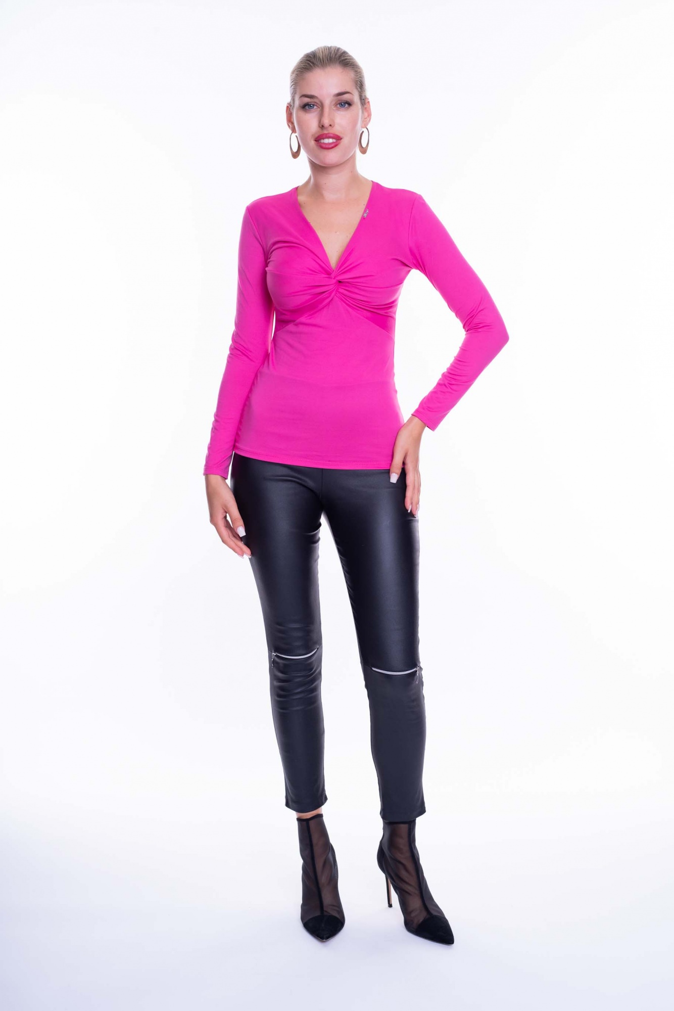 Elasztikus anyagból készült felső, mellrészen csavart megoldással, kis fém márkajelzéssel.
