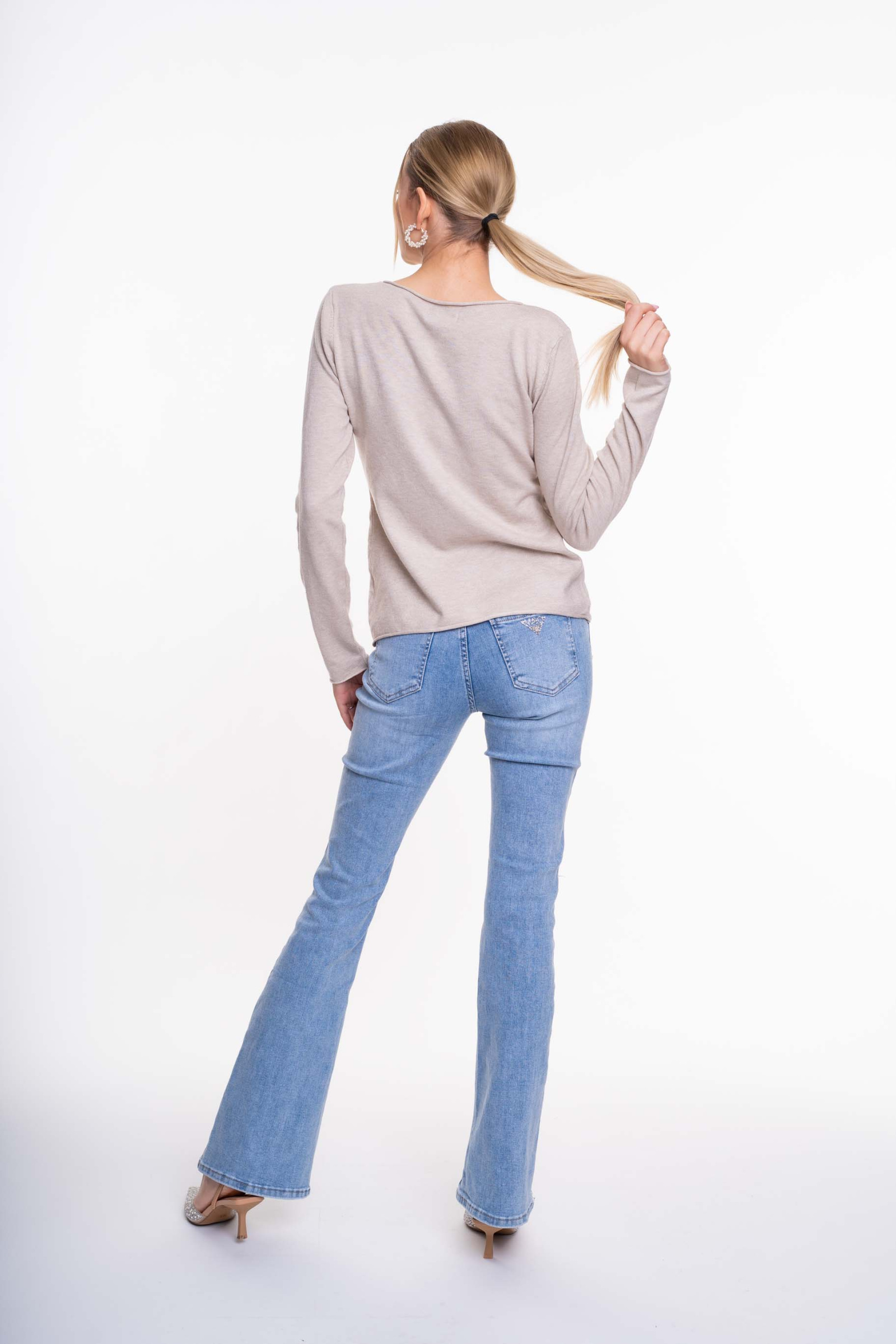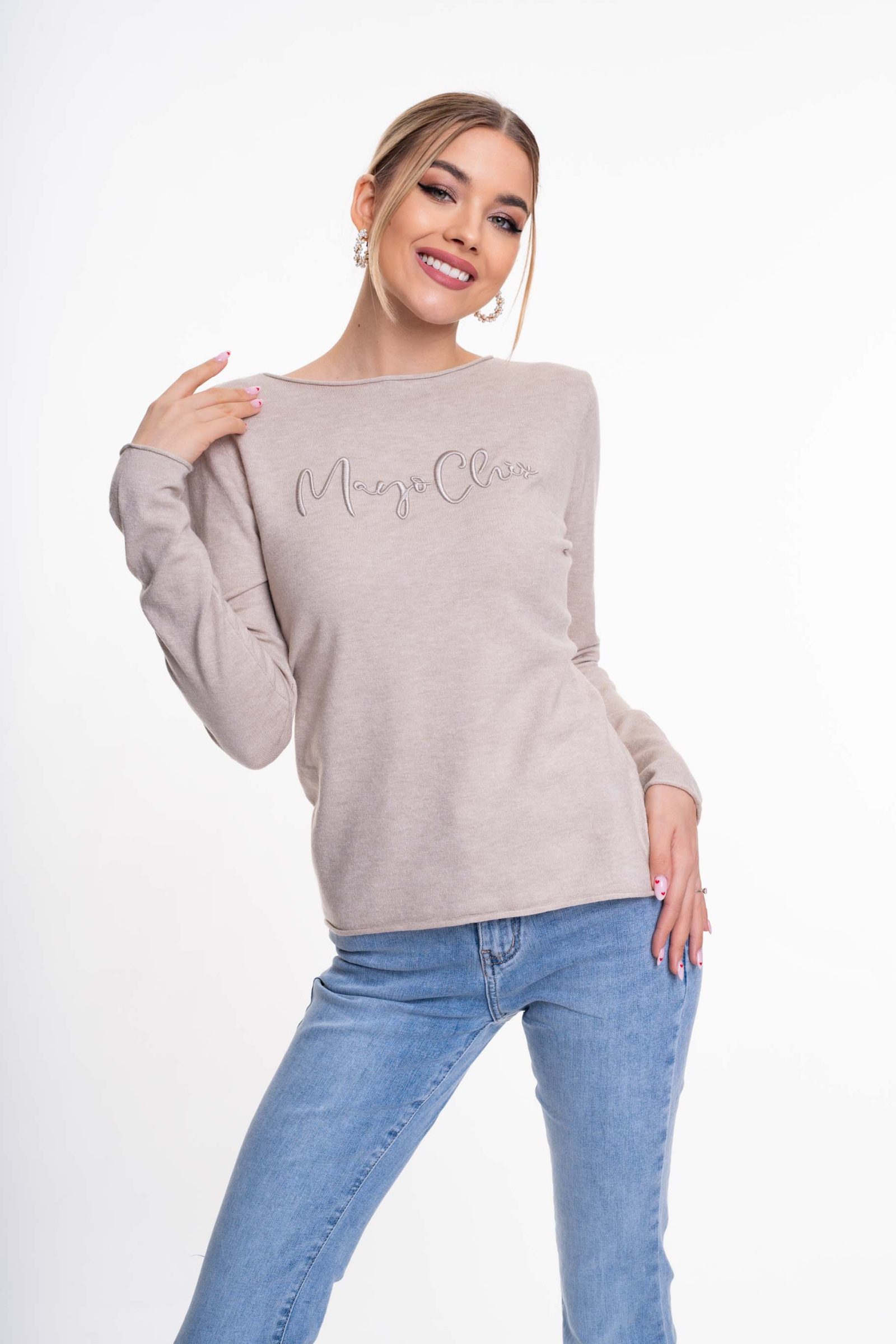 Elasztikus, vékony kötött anyagú pulóver, hímzett márkajelzéssel.