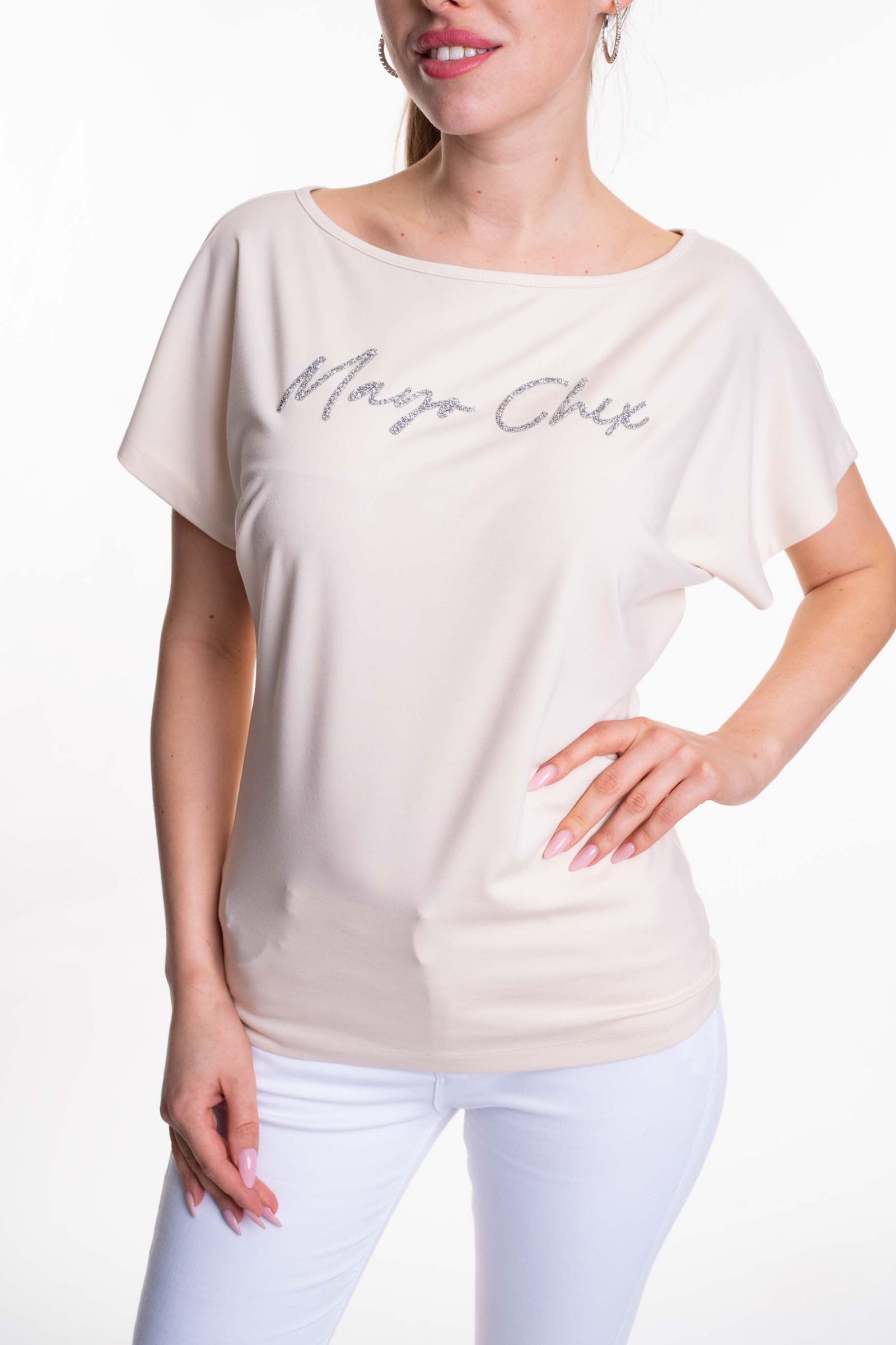 Elasztikus anyagból készült lezser szabású tunika, strasszköves díszítésssel.