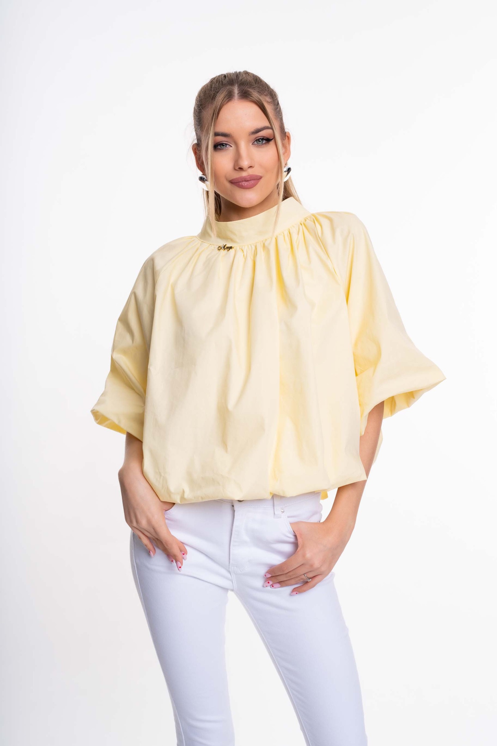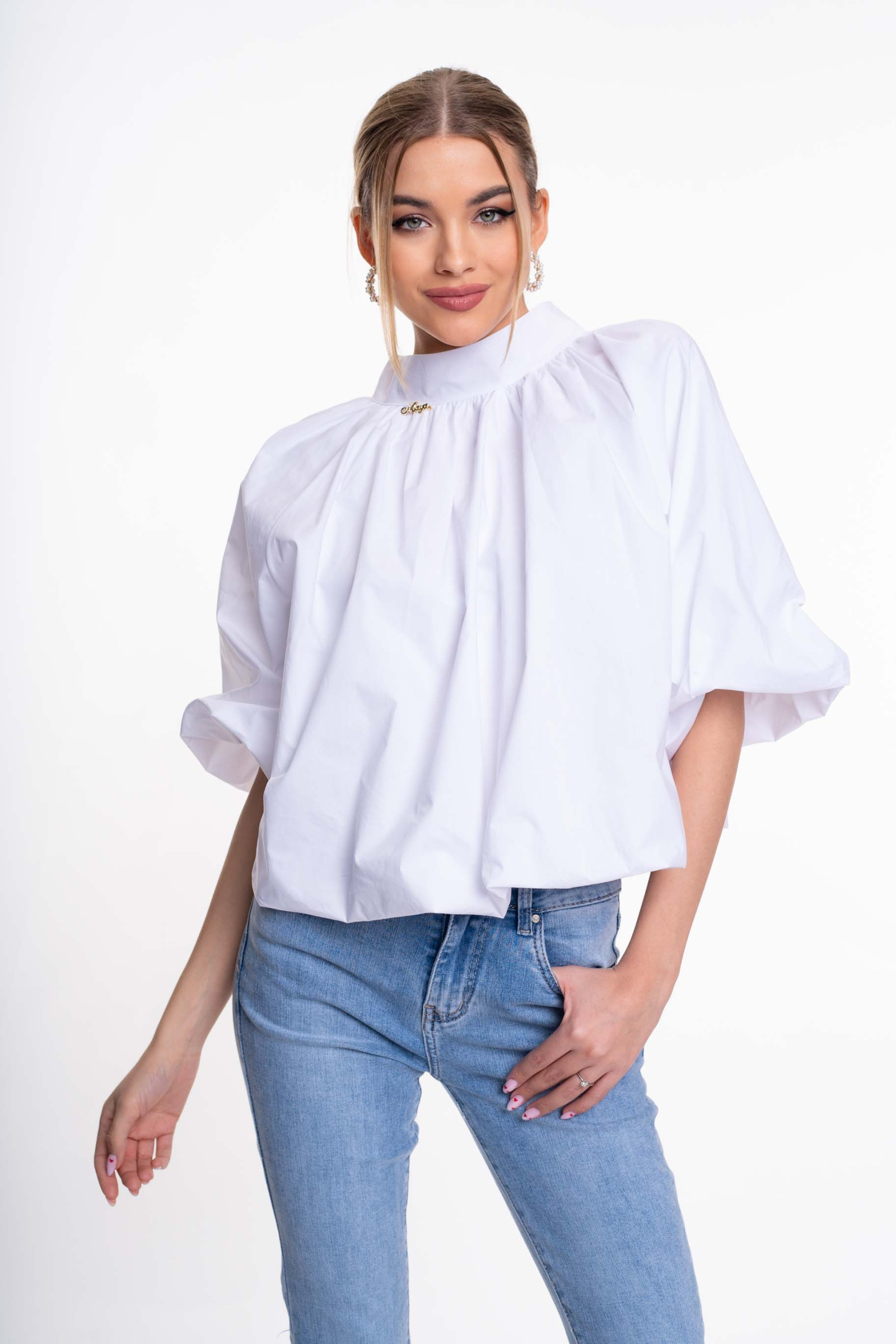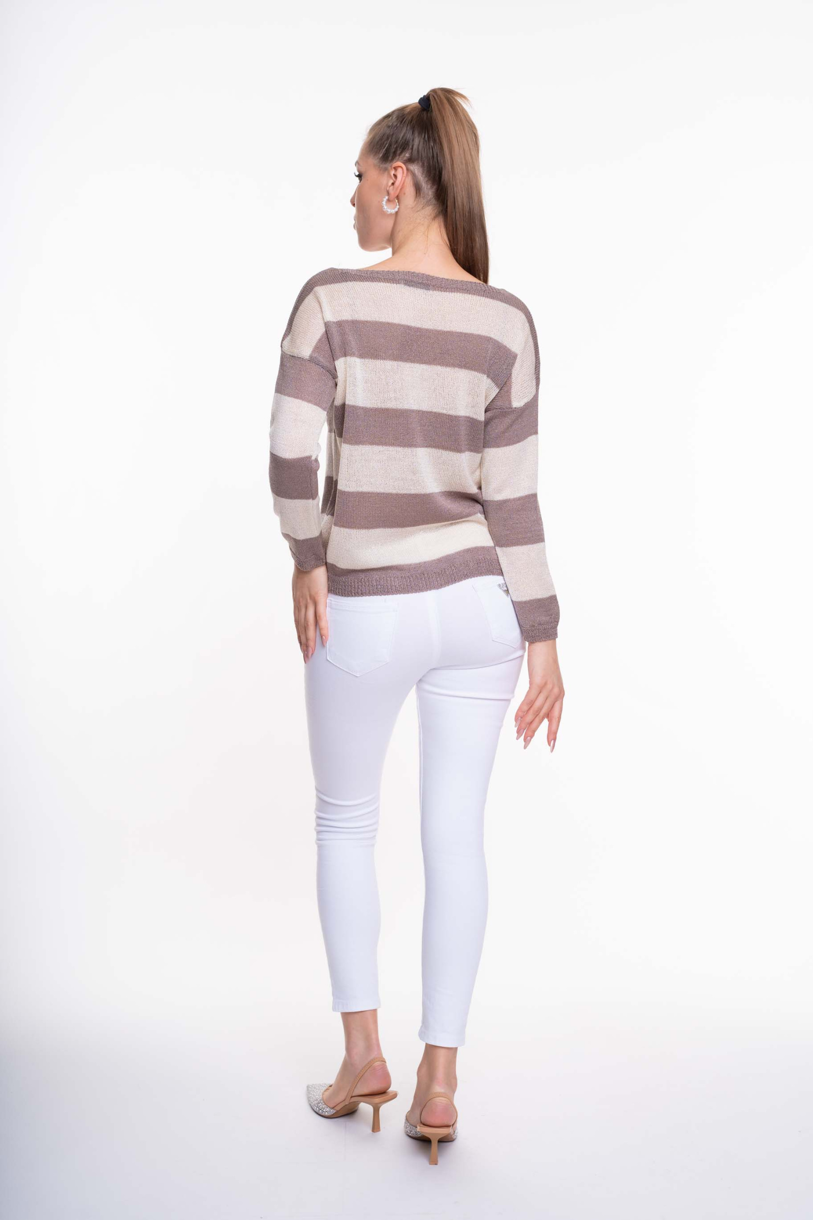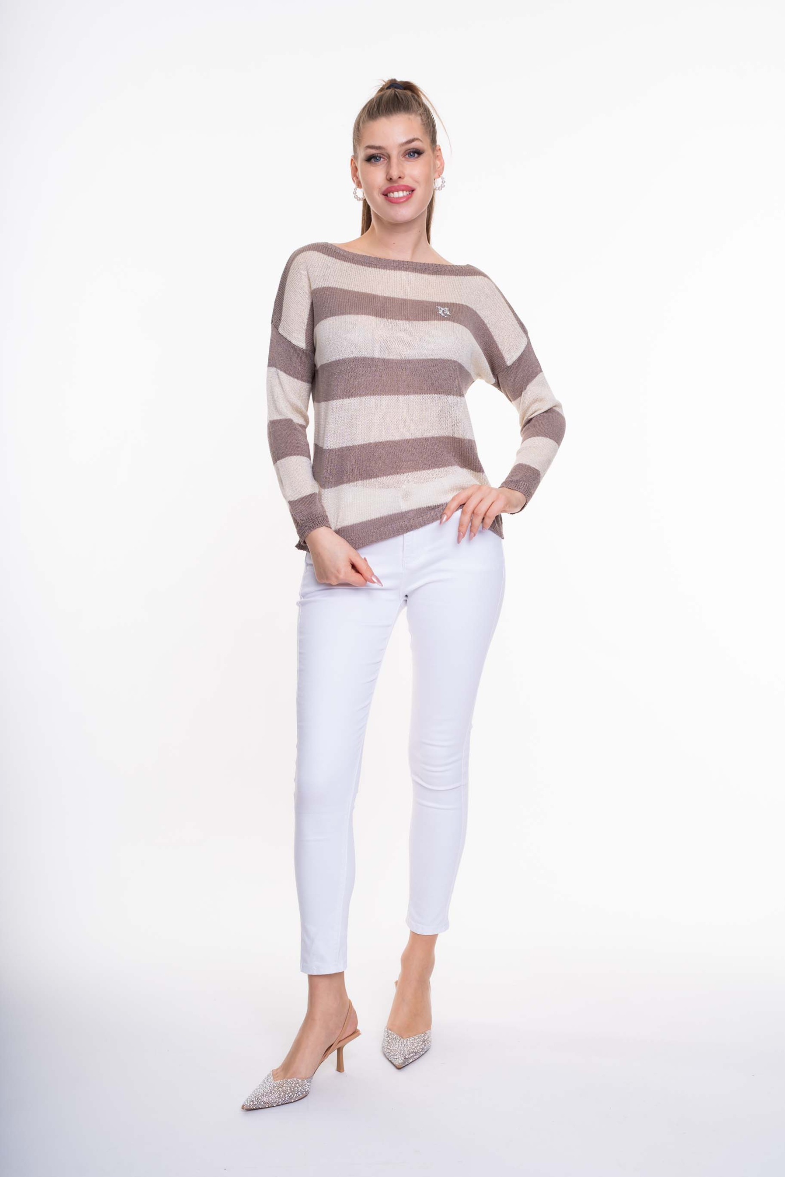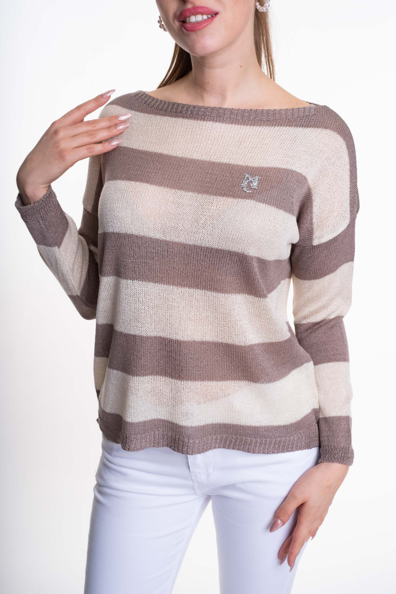 Laza kötésű, lezser szabásvonalú pulóver, strasszos matrica nyomott márkajelzéssel.