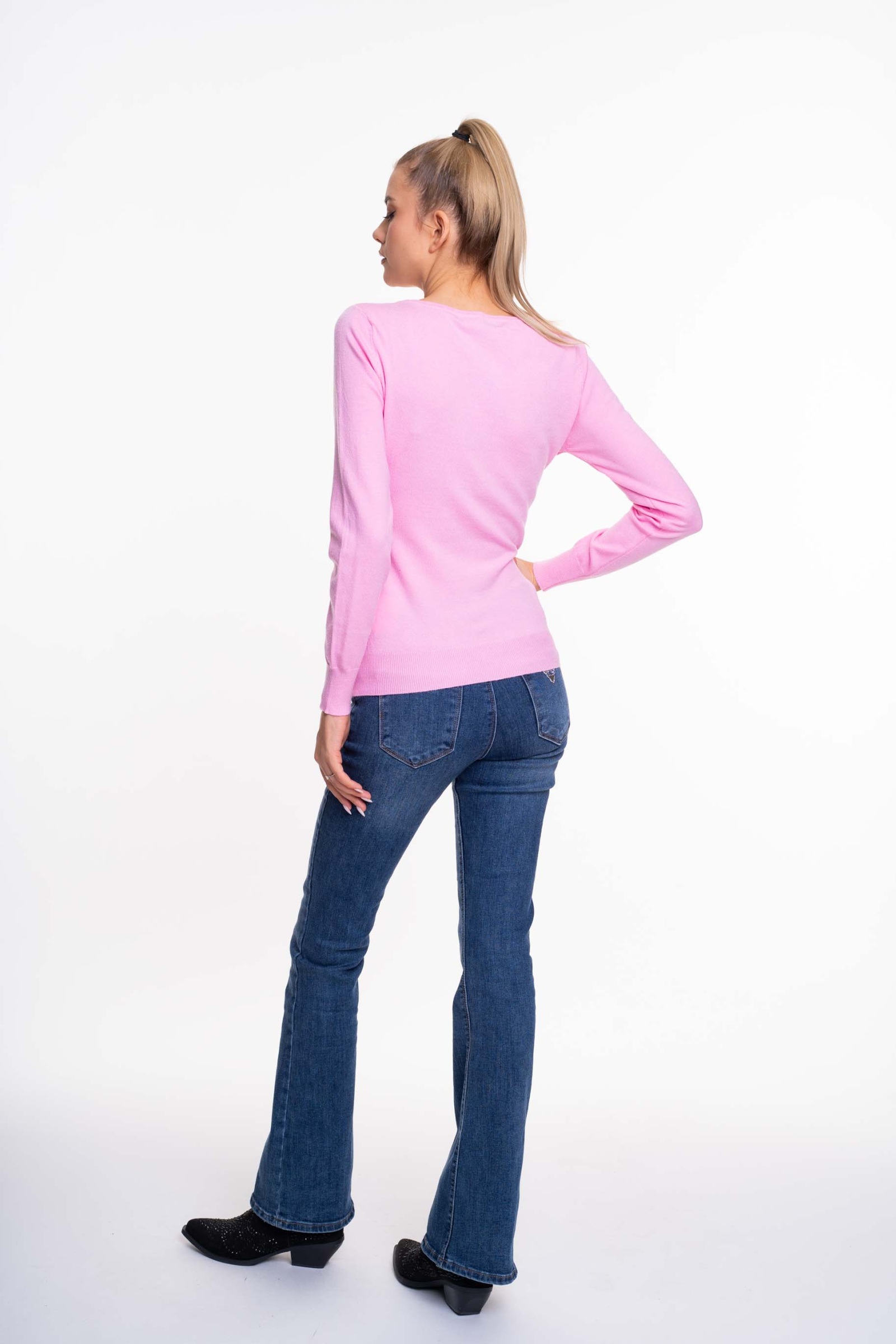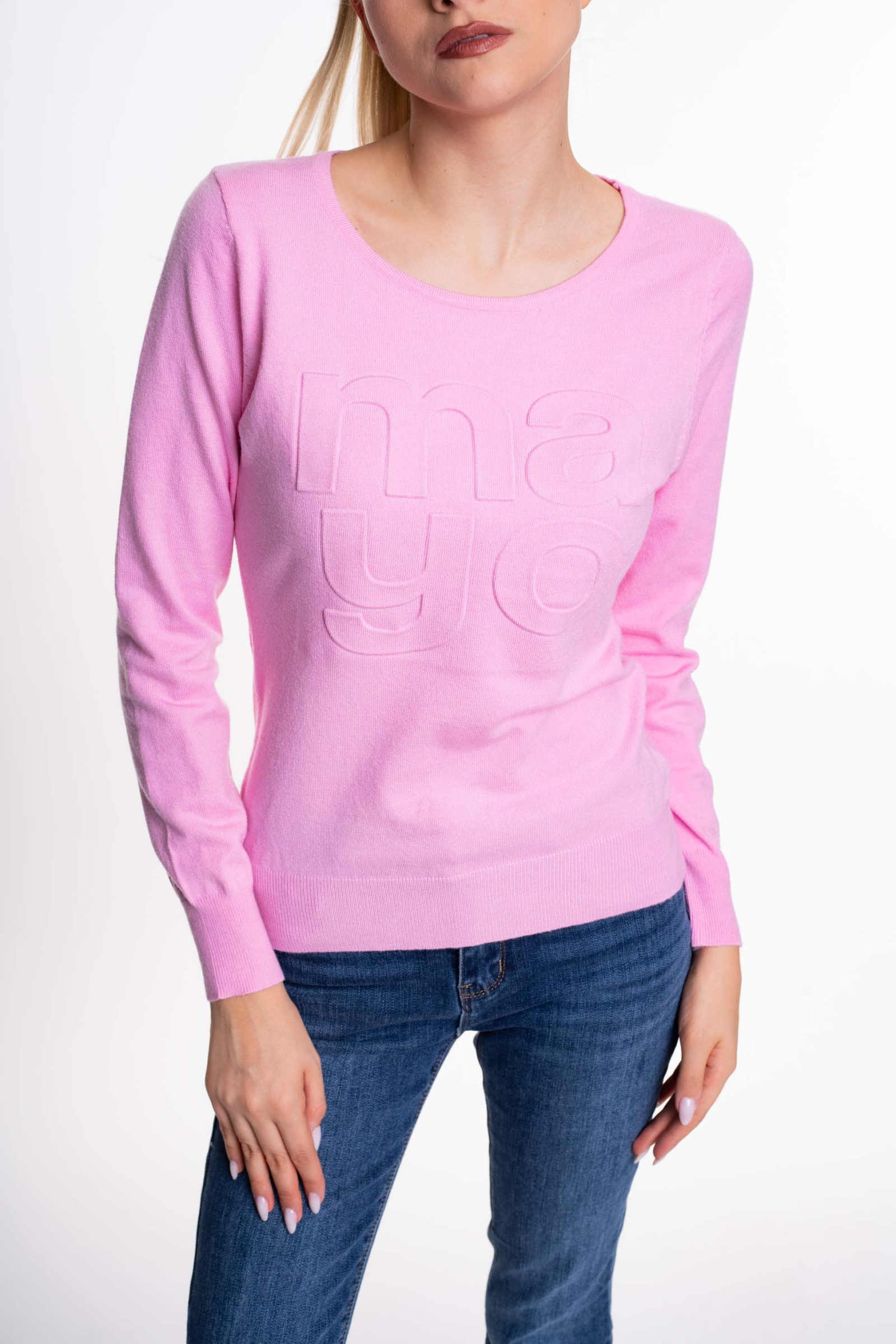Vékony kötött anyagú, környakú pulóver, domború márkajelzéssel