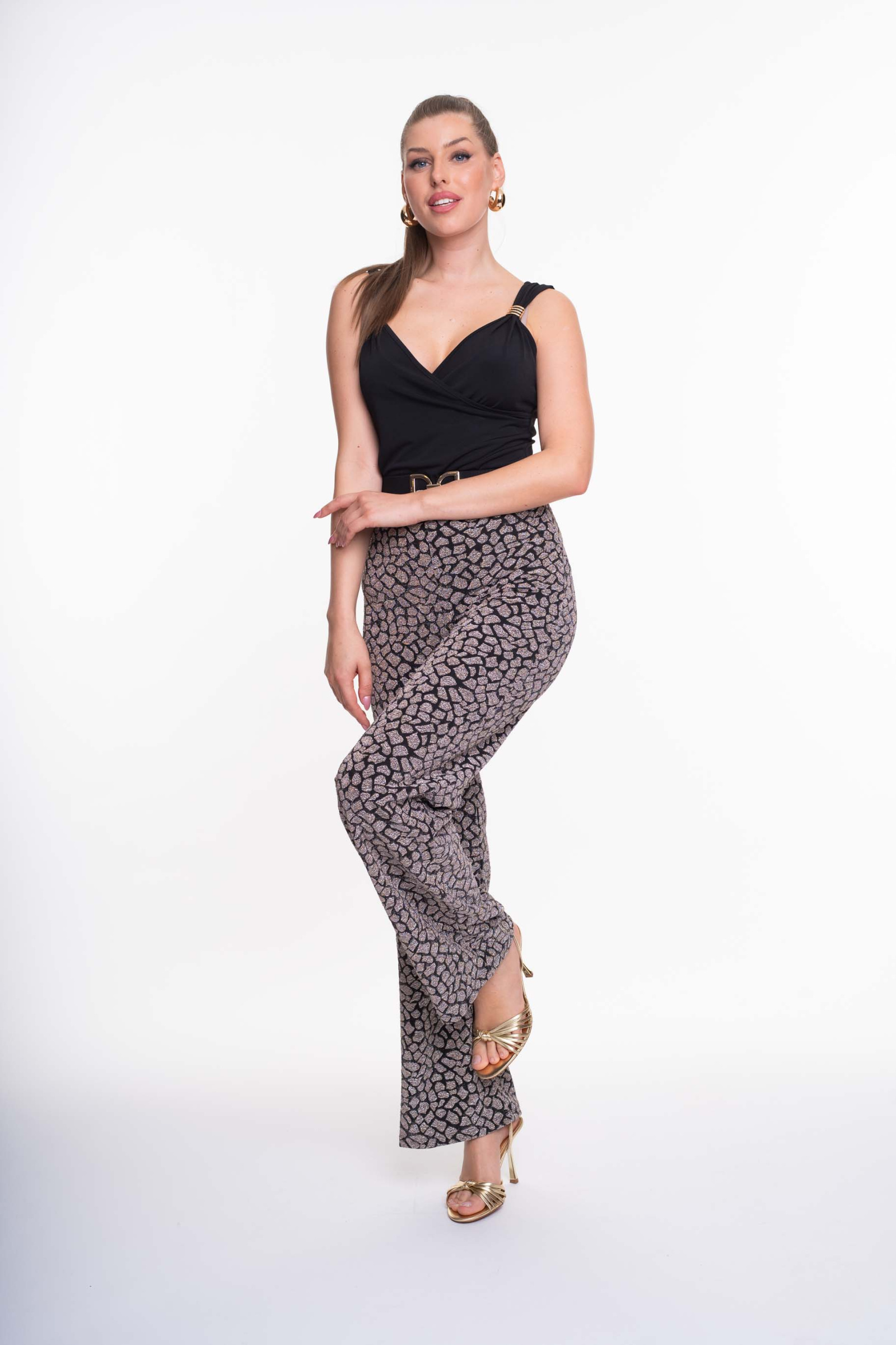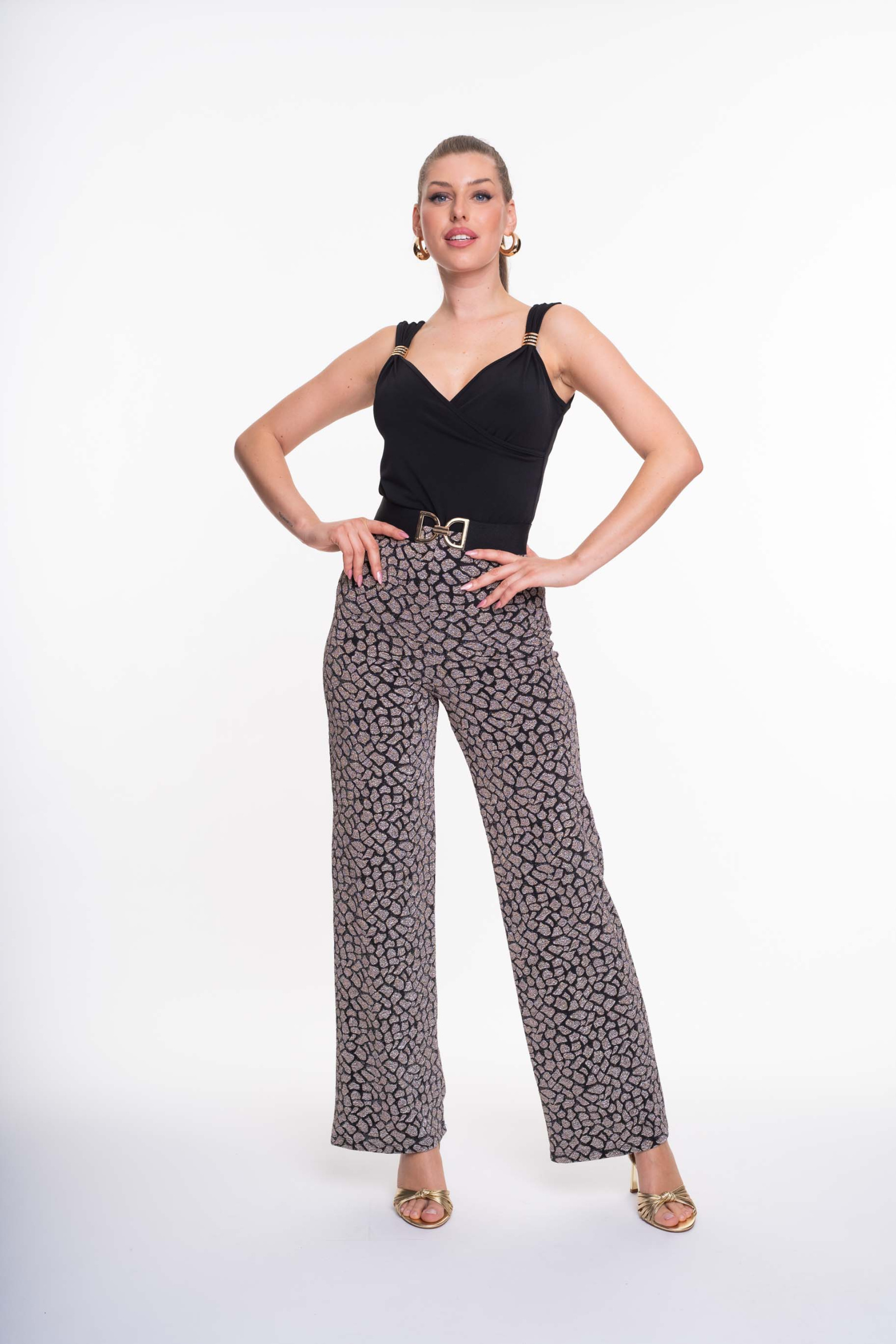 Elasztikus anyagból készült, karcsúsított fazonú felső, mellrészen átlapolt megoldással, kis fém márkajelzéssel.