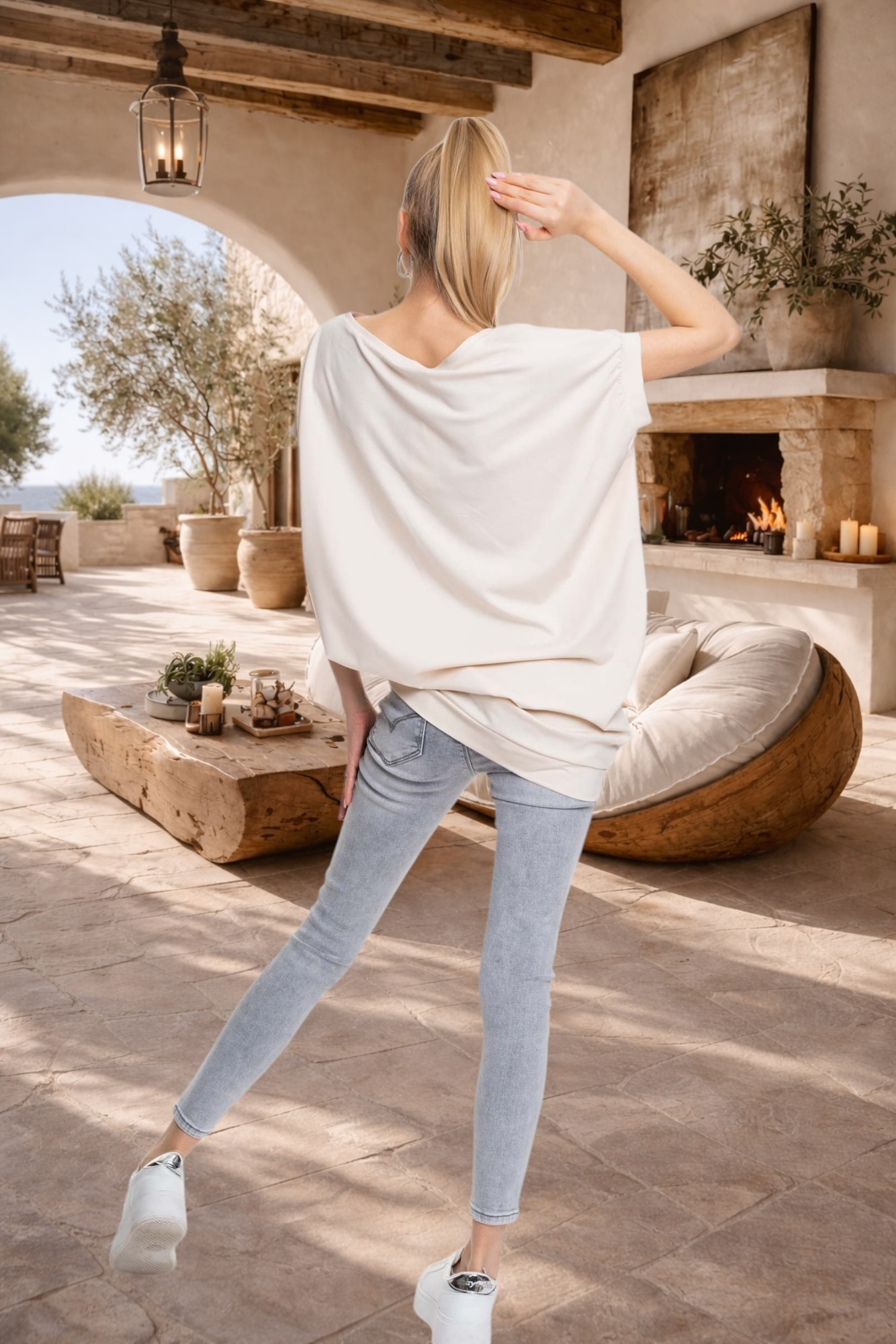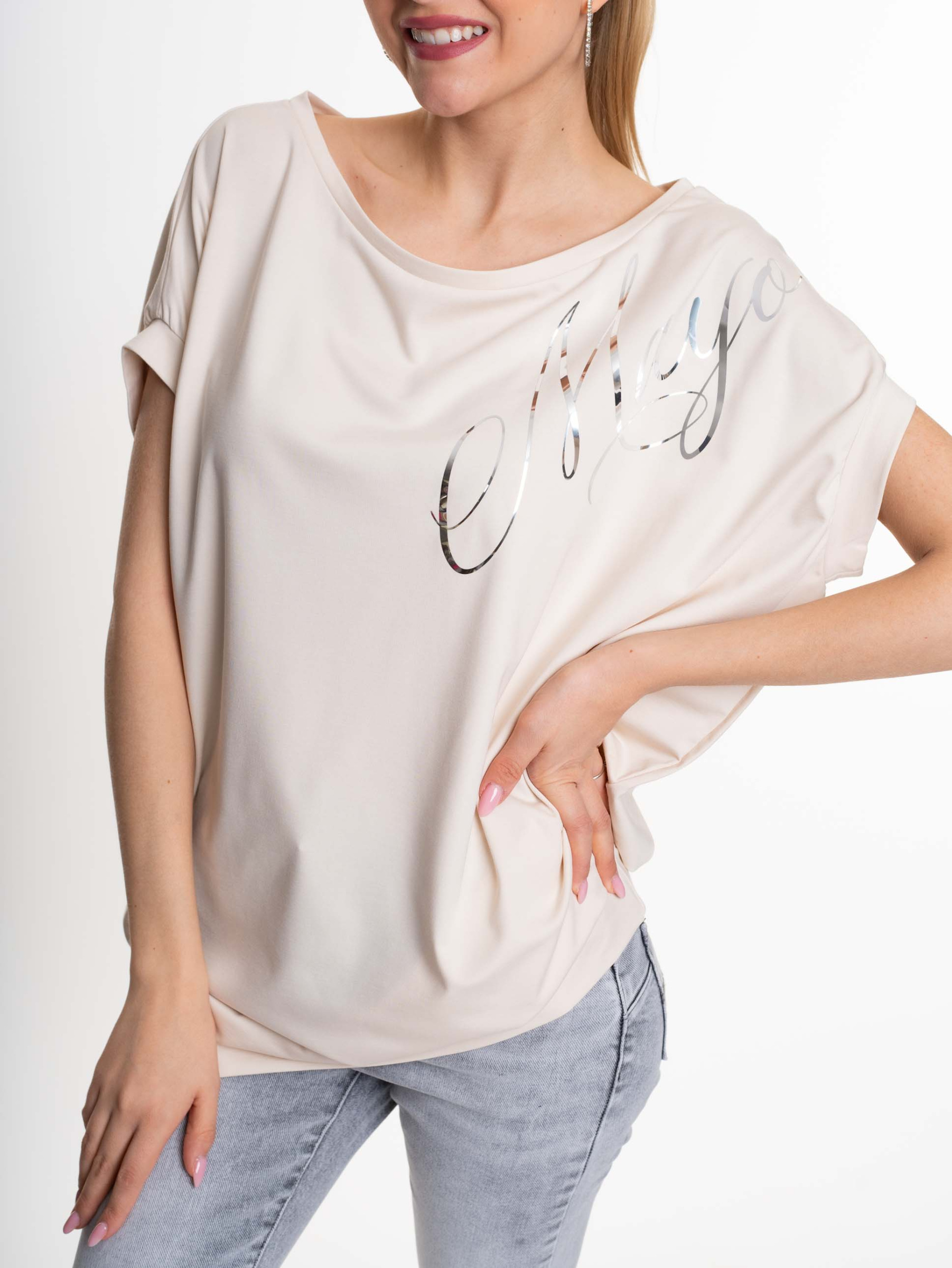 Elasztikus anyagból készült lezser szabású tunika, matrica díszítéssel.