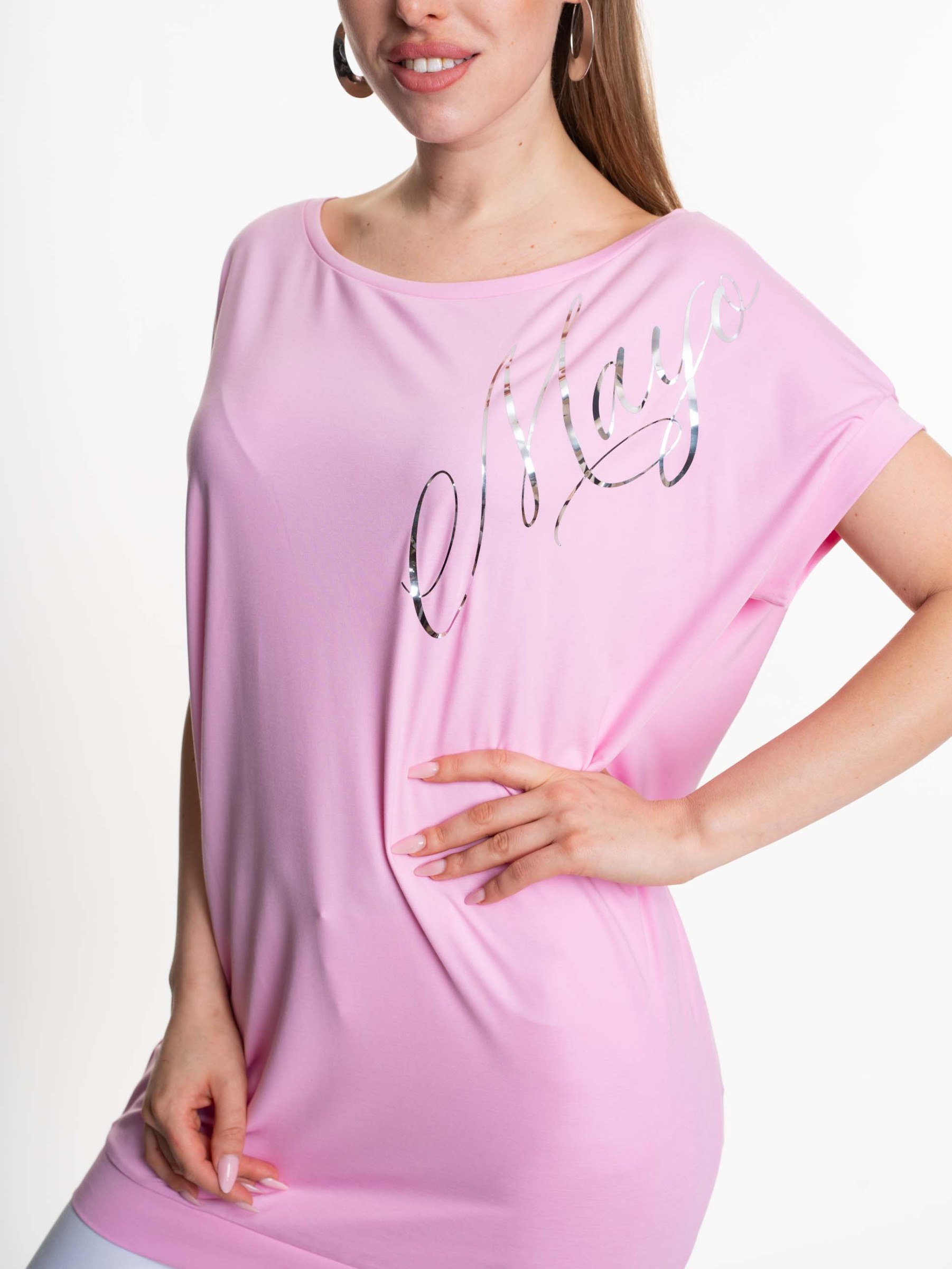 Elasztikus anyagból készült lezser szabású tunika, matrica díszítéssel.